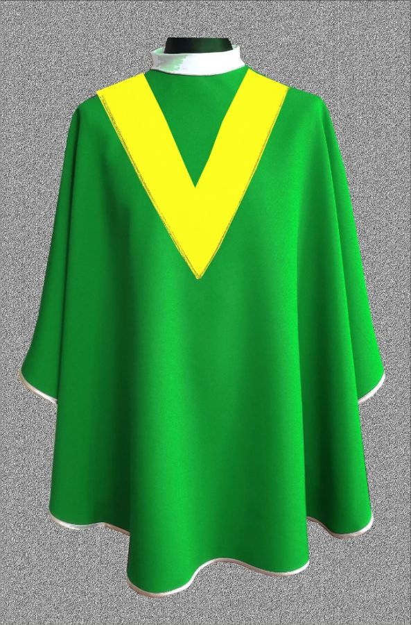 Ornat haftowany, ozdobiony dookoła lamówką.