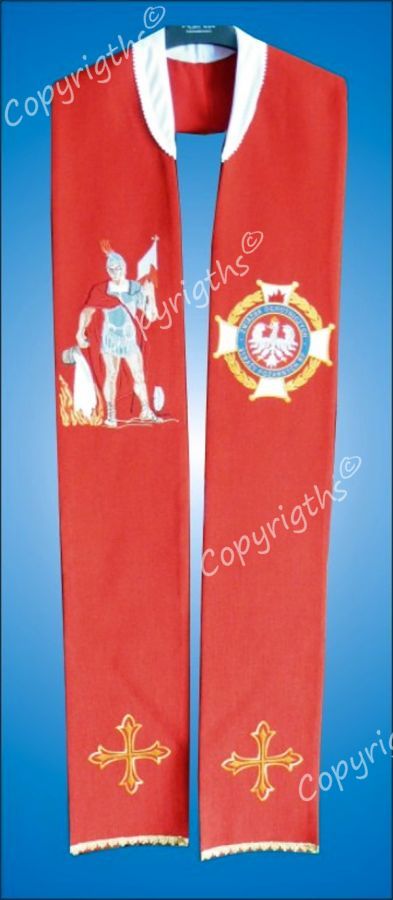 Szkaplerz lektorski w różnych kolorach. Ozdobiony dookoła atłasową lamówką, usztywniony.