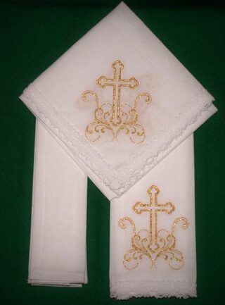 Zasłonka wielkopostna na krzyż, wiązana na sznurki.