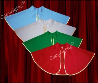 68,00 zł – 85,00 złWybierz opcje Ten produkt ma wiele wariantów. Opcje można wybrać na stronie produktuPeleryna dla scholi, ozdobiona dookoła srebrnopodobną atłasową lamówką, kołnierz do szpica, wiązana na sznurki.